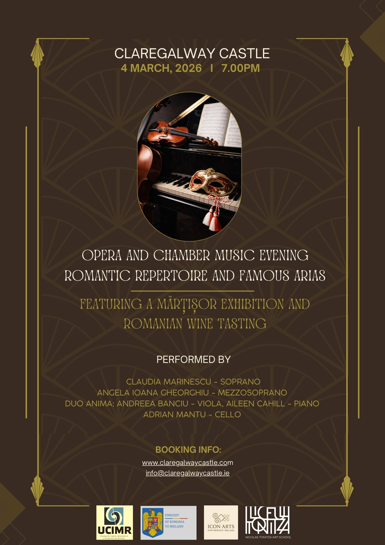 An event organized by: UCIMR – the ROMANIAN ASSOCIATION OF MUSIC PERFORMERS, THE EMBASSY OF ROMANIA TO IRELAND, ICON ARTS IRELAND